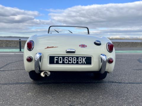 Cette Frogeye est en magnifique état. La peinture à été refaite il y a 2 ans. Toutes la sellerie est en excellent état. La capote ainsi que le couvre tonneau sont quasi-neufs. Elle dispose également des sides-screen d’origine !
