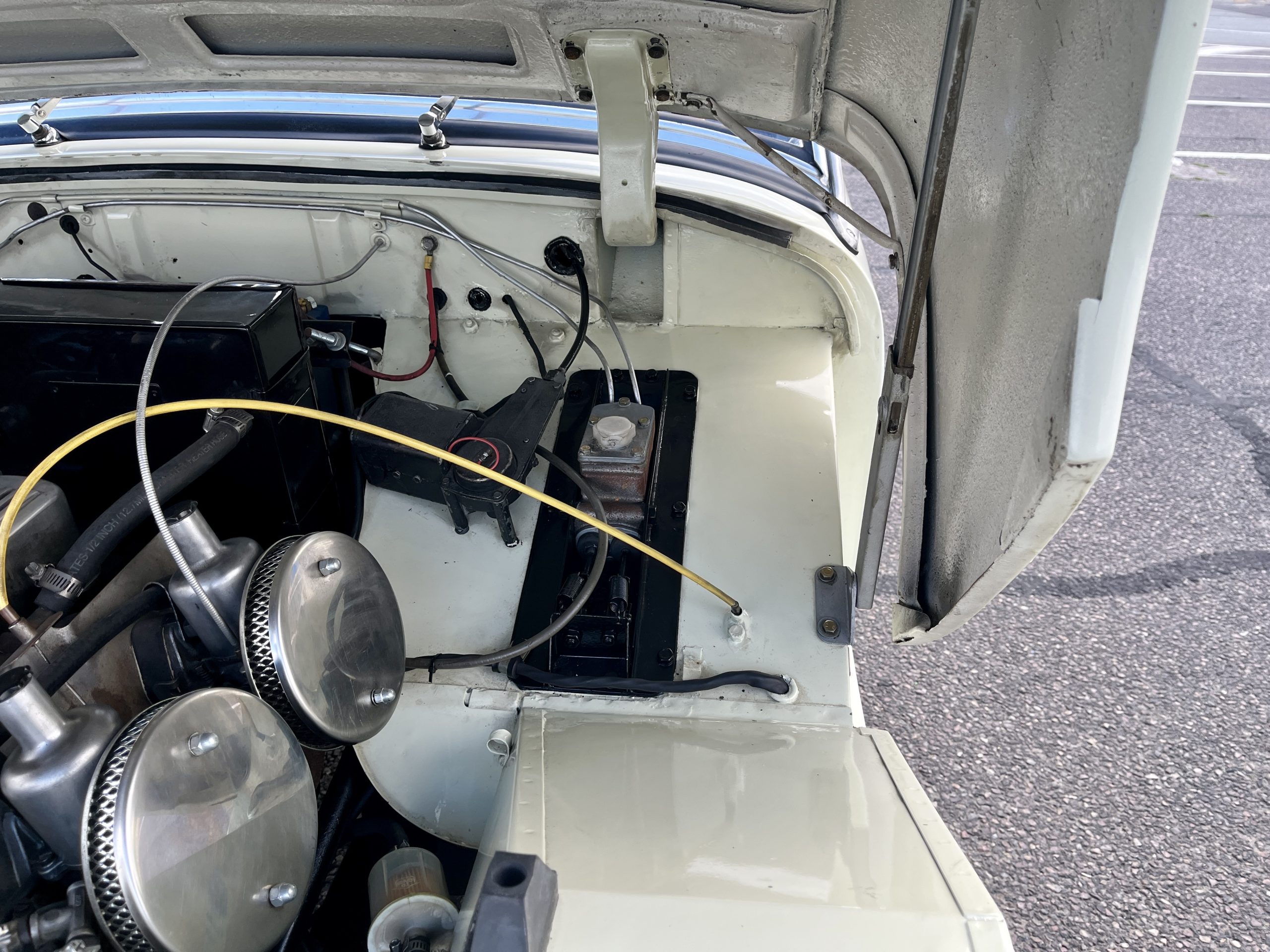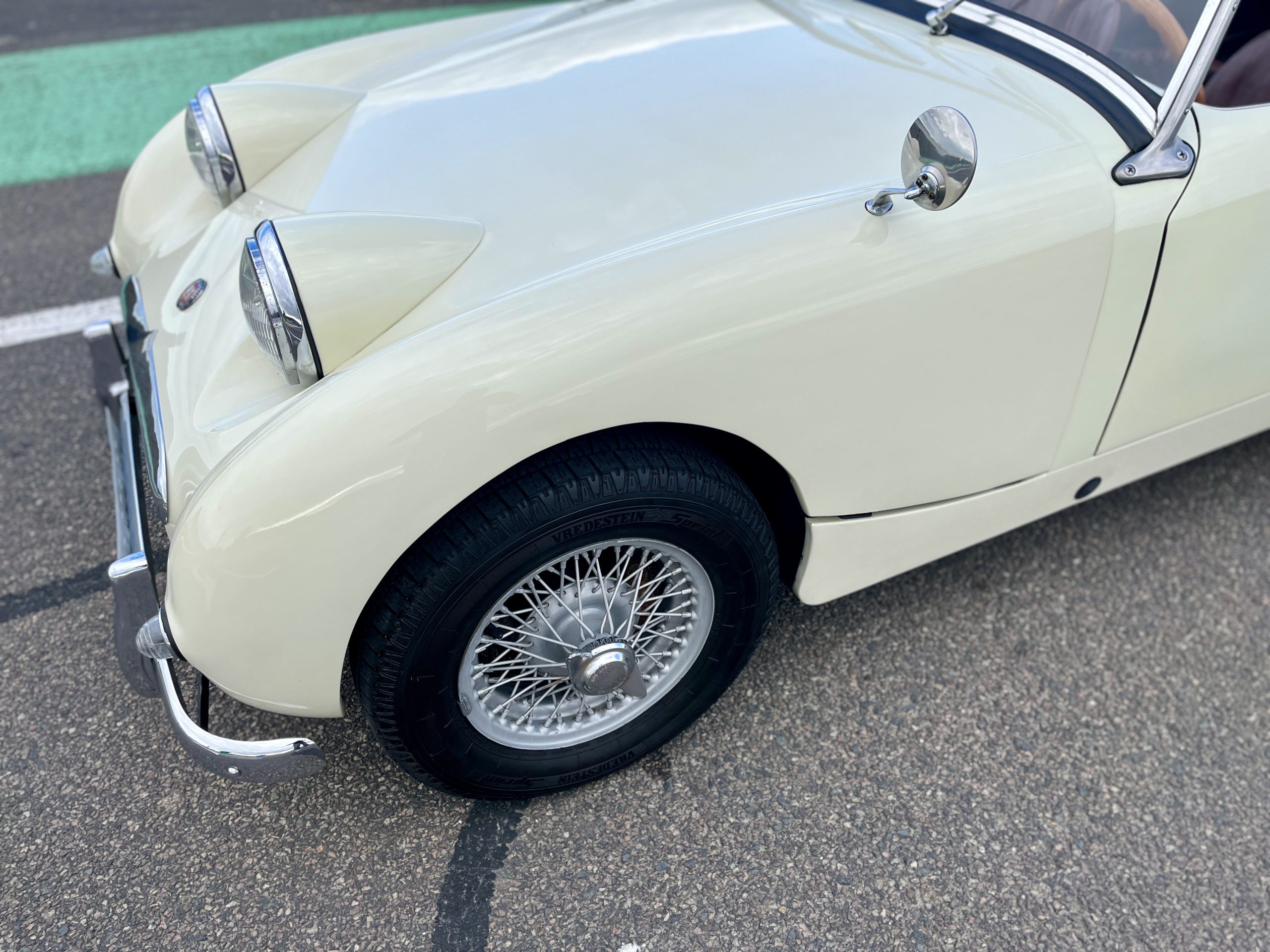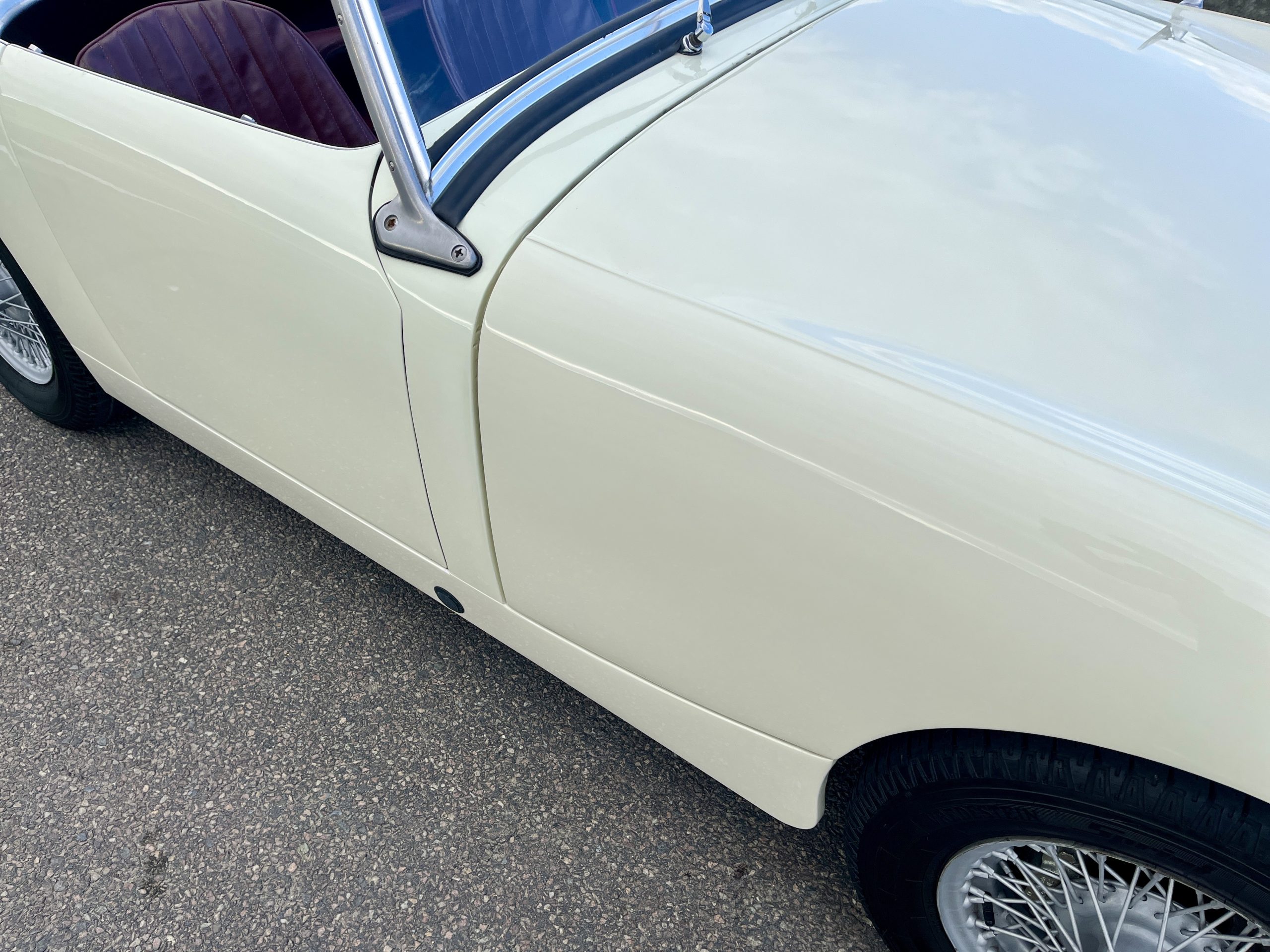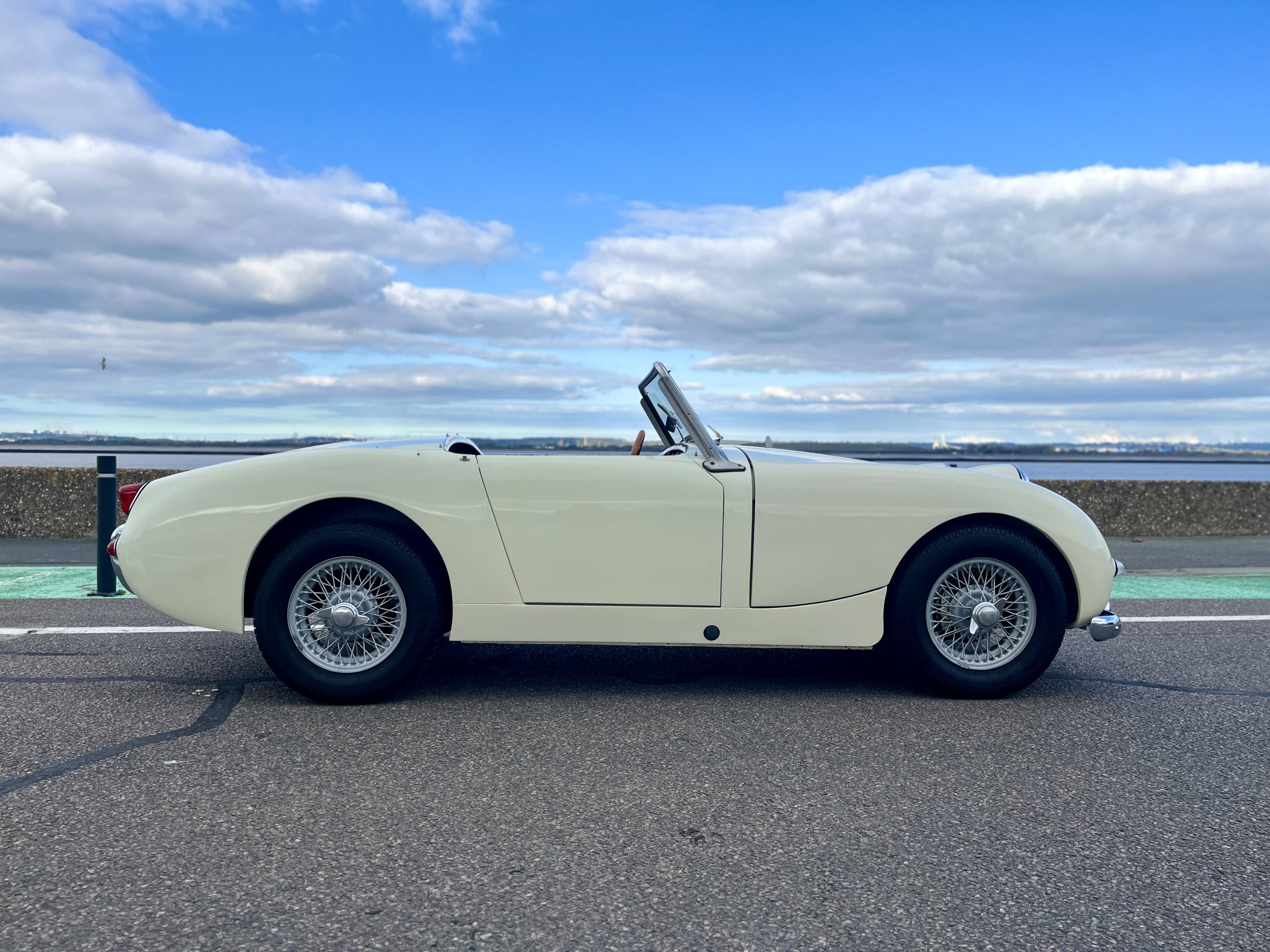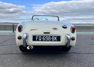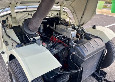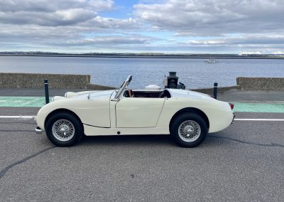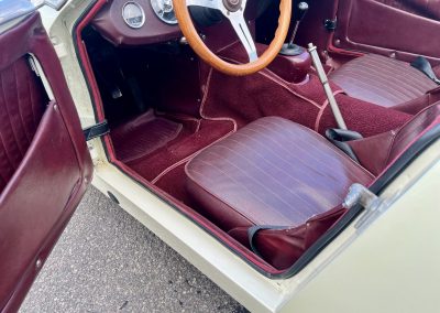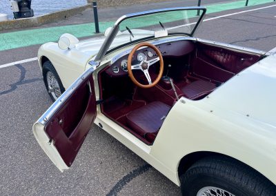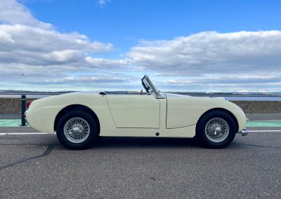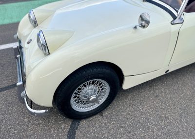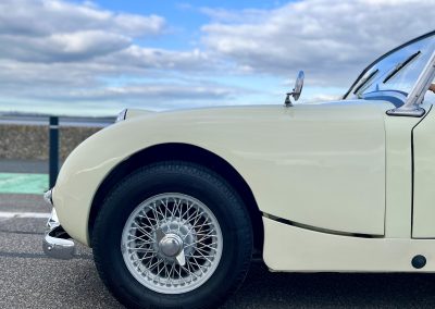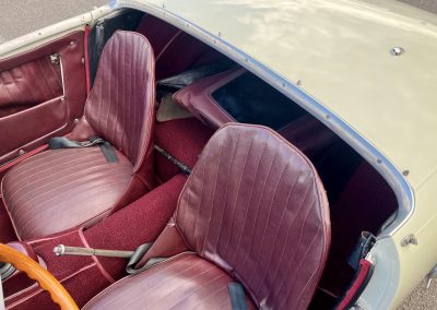 Cette Frogeye est en magnifique état. La peinture à été refaite il y a 2 ans. Toutes la sellerie est en excellent état. La capote ainsi que le couvre tonneau sont quasi-neufs. Elle dispose également des sides-screen d’origine !