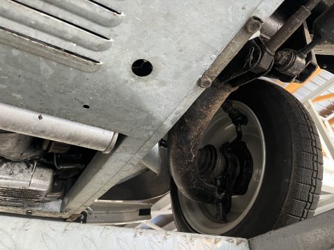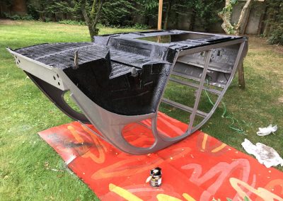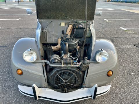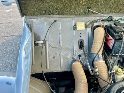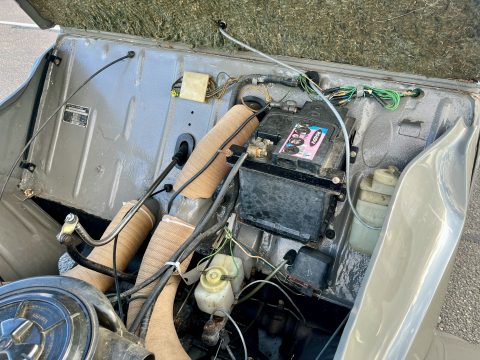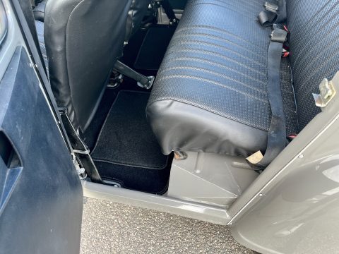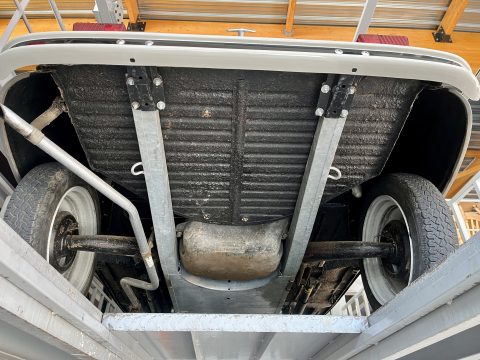 Son gros point fors est son châssis en galva. Ce type de châssis assure une conservation exceptionnelle et n’est pas sujet à l’oxydation et à la rouille. La sellerie ainsi que la capote ont également été restaurées.