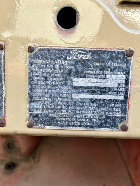 Cette Ford GPW peut être vendue dans l’état ou entièrement restaurée (voir exemple en fin de dossier photos) sur devis.