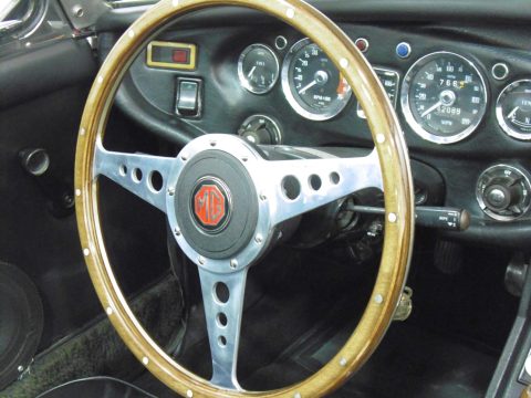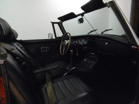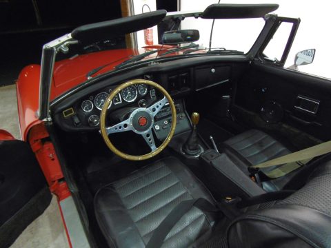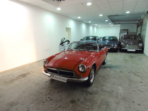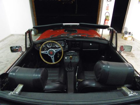 MGB Cabriolet de 1974 (avec porte bagage et volant en bois) en bon état général.