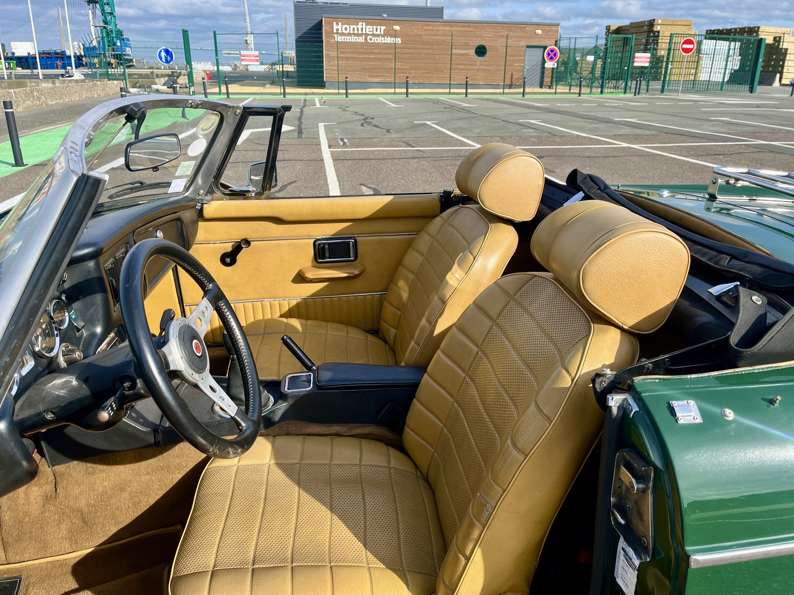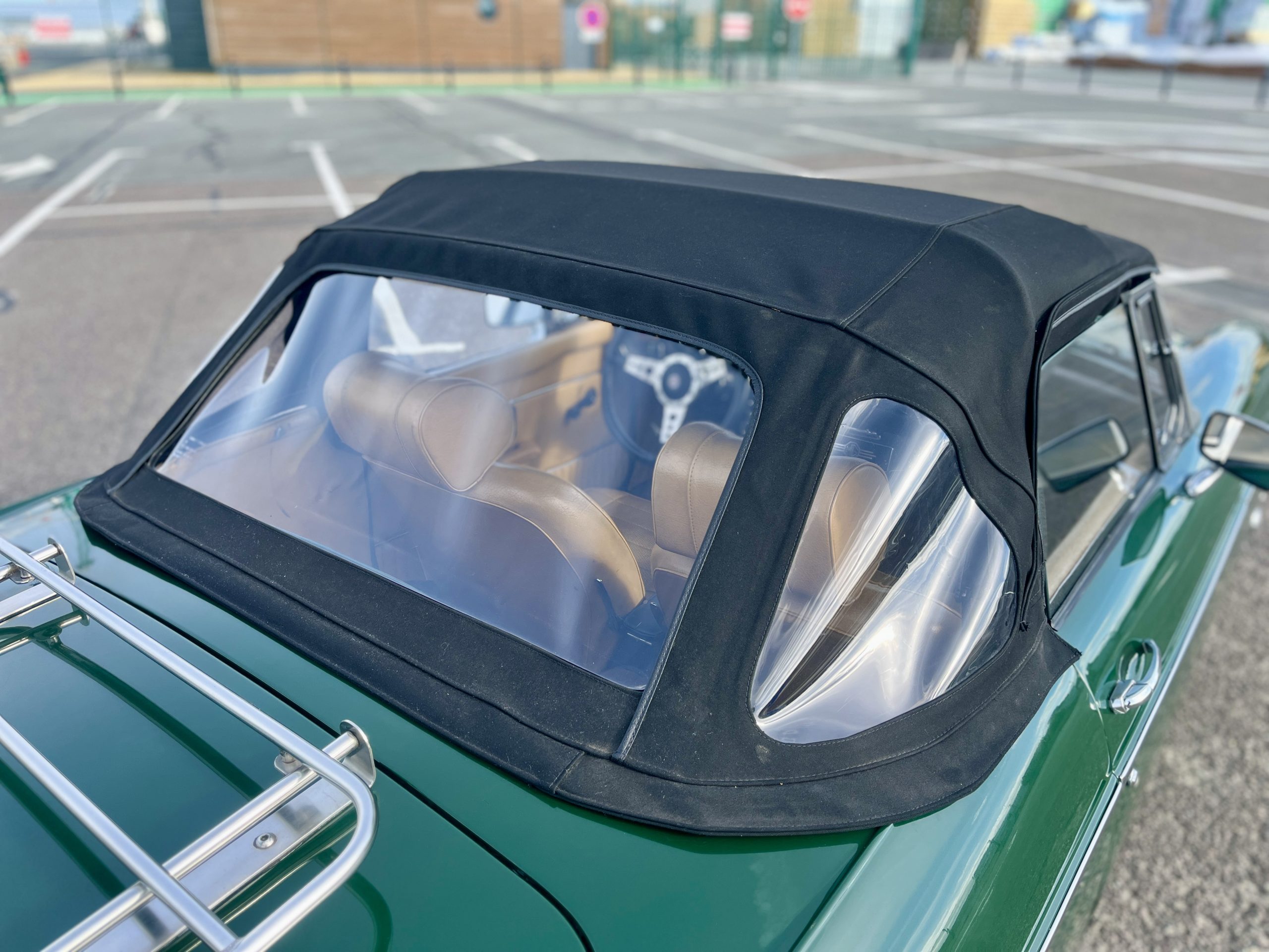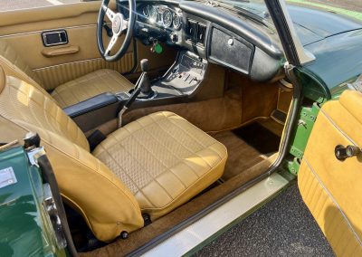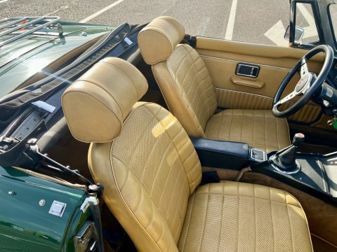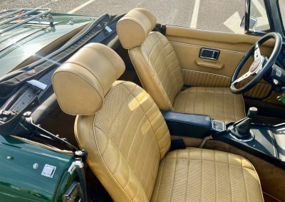 Couleur British Racing Green et intérieur marron.