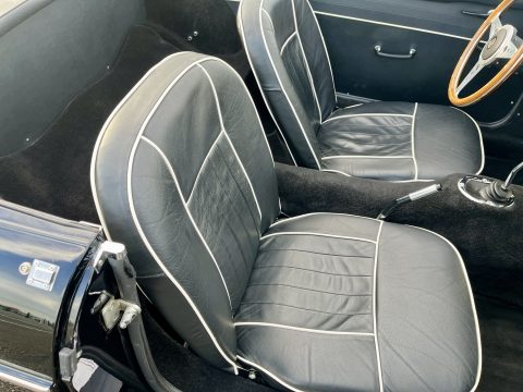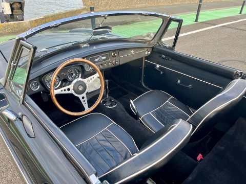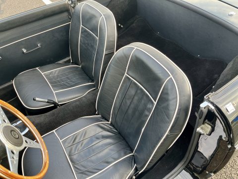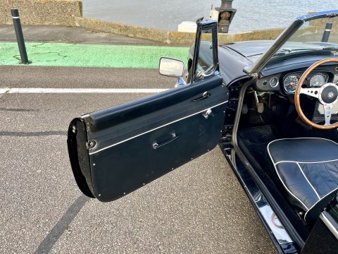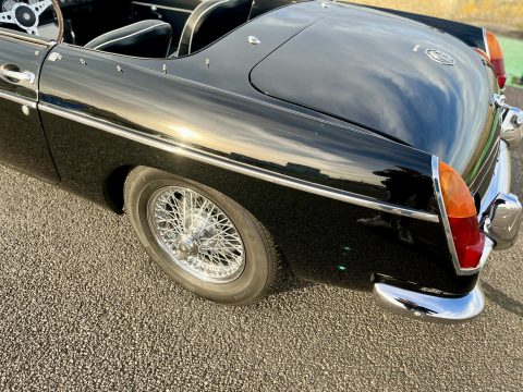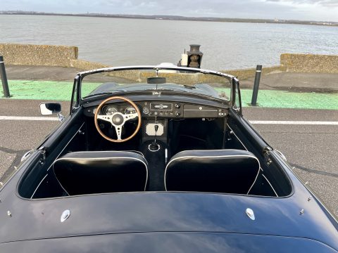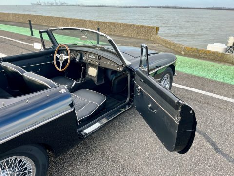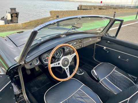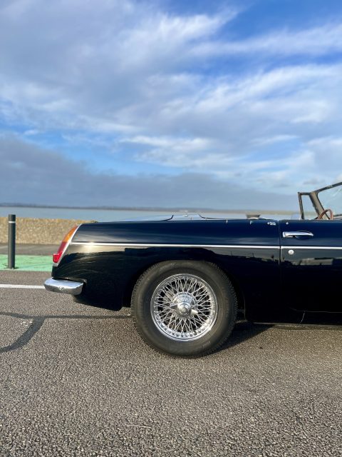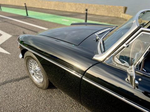 Cette MGB est une MKI. Elle est sortie en 1963, la deuxième année de production de ce modèle. Elle est équipée des poignées de porte « frigo » d’origine, plutôt rare sur ce modèle.