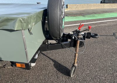 Livrée avec des caillebotis en caoutchouc pour protéger le fond de la remorque ainsi qu’une deuxième roue jockey.