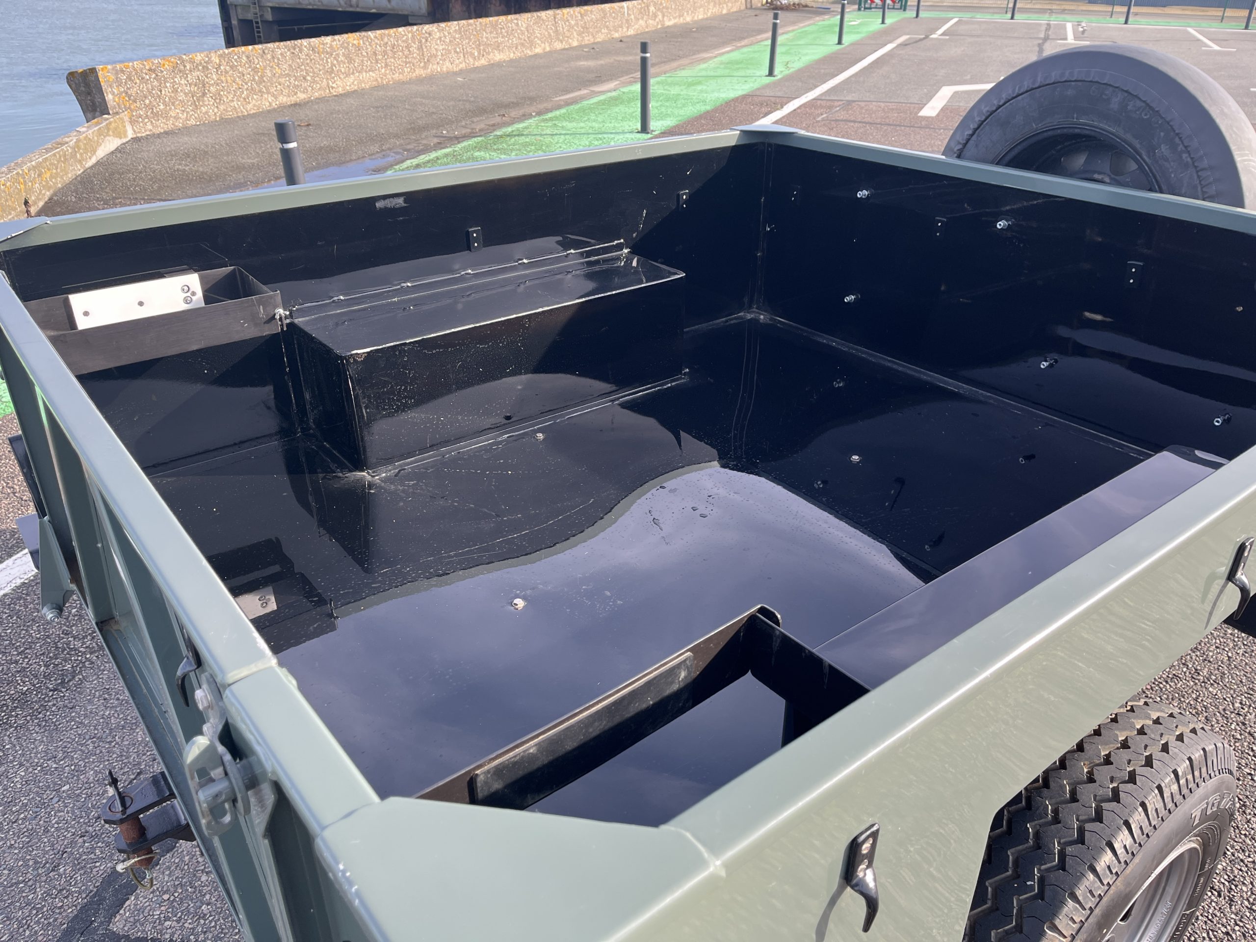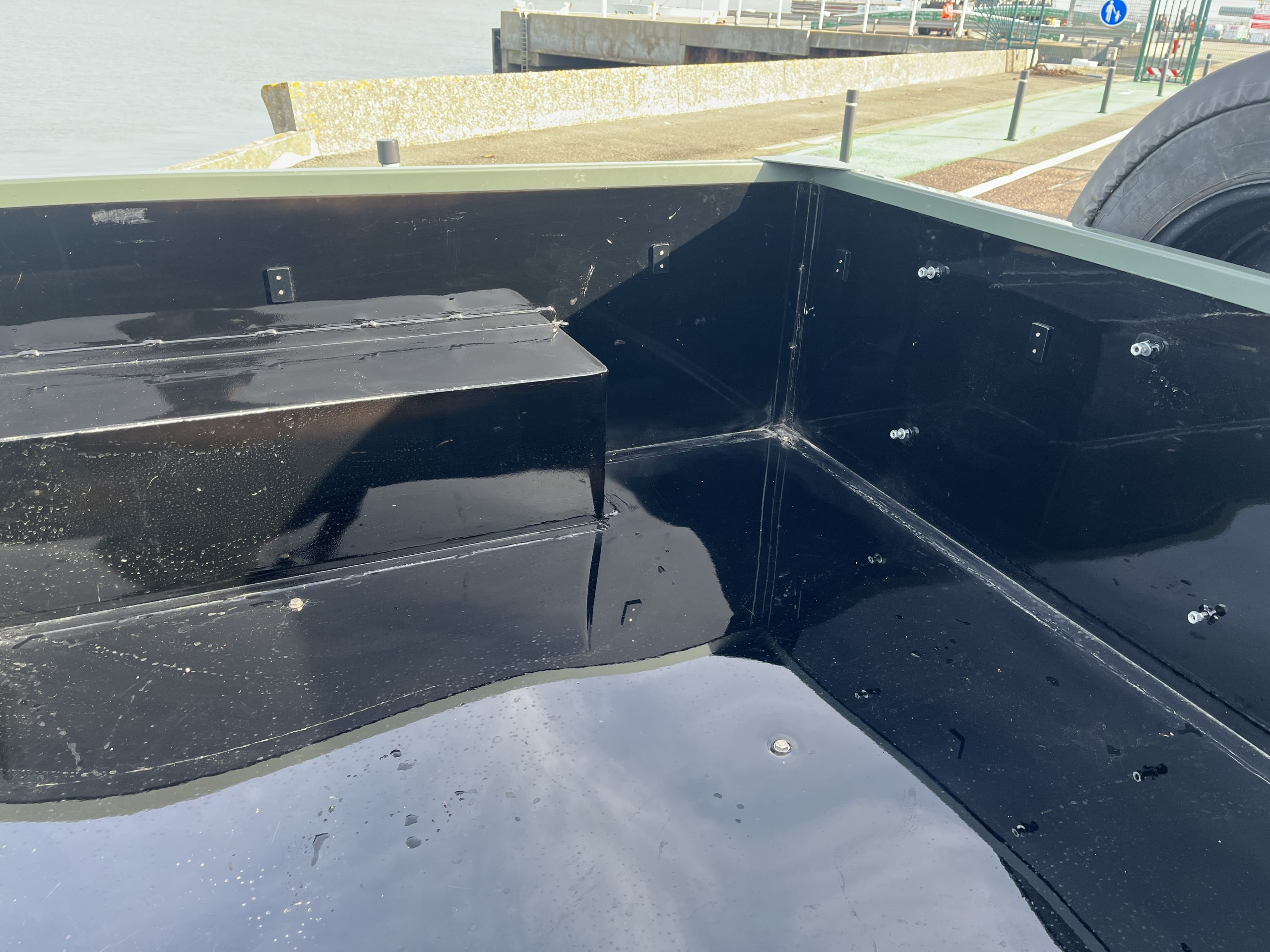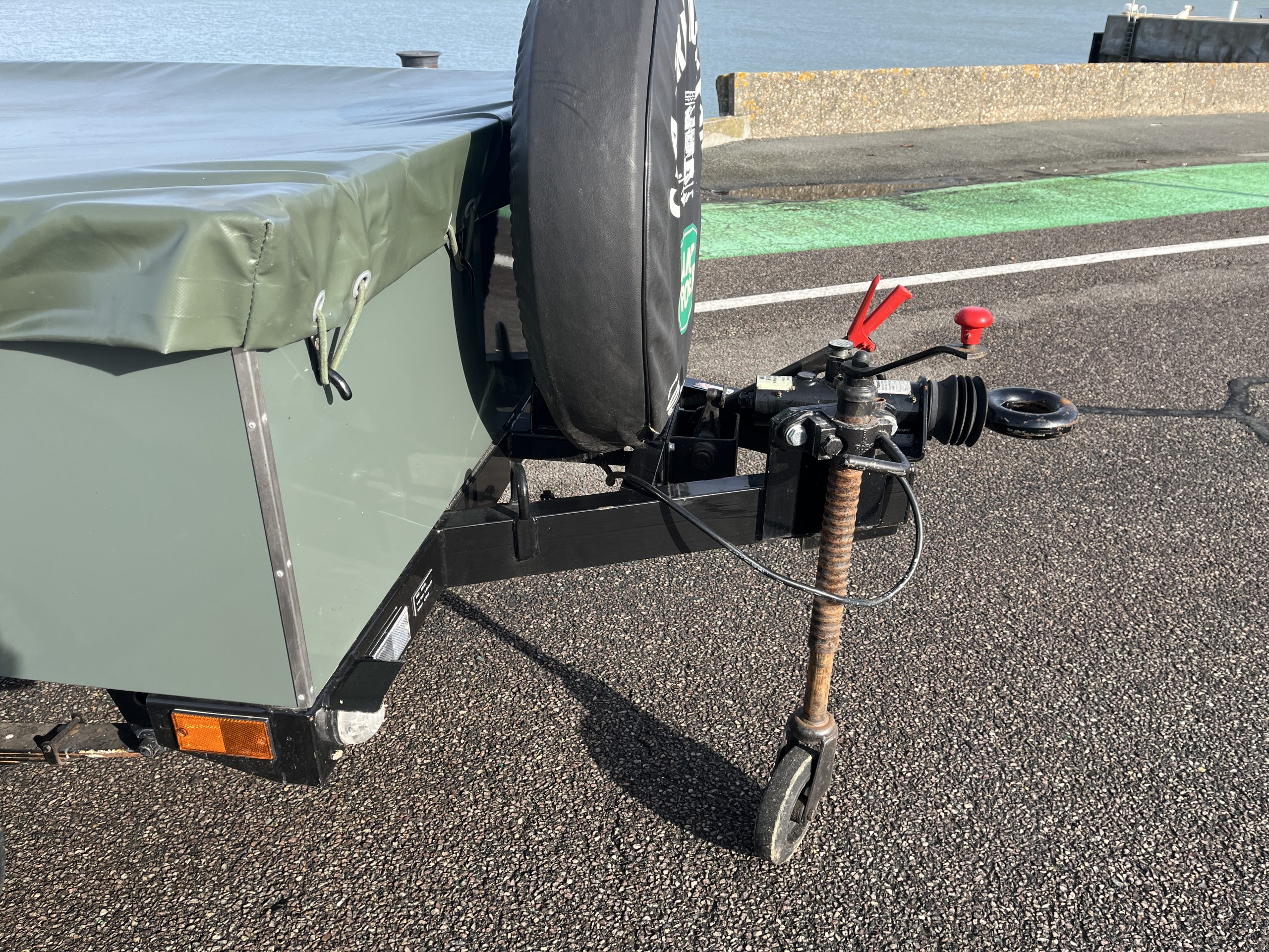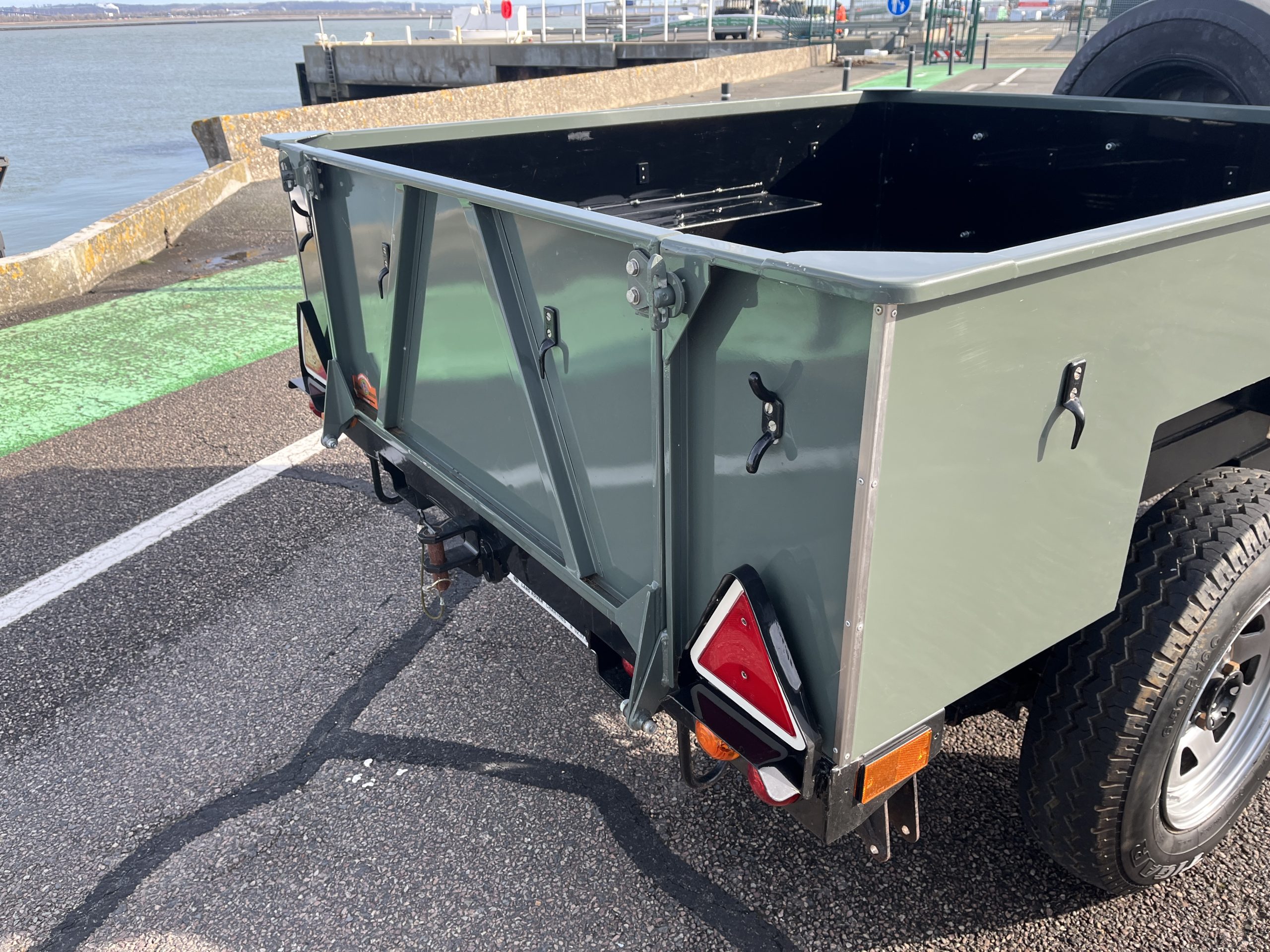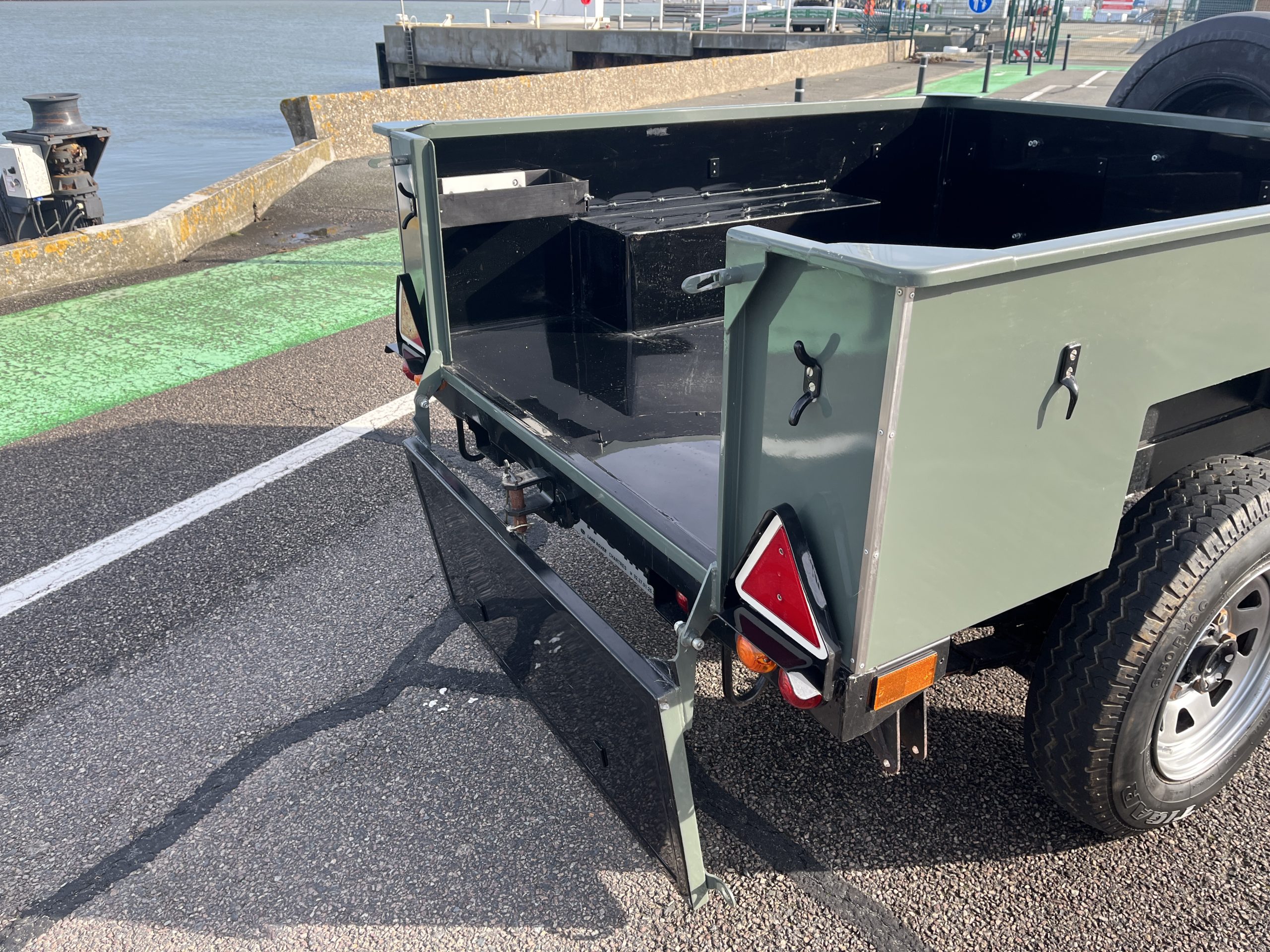 Livrée avec des caillebotis en caoutchouc pour protéger le fond de la remorque ainsi qu’une deuxième roue jockey.