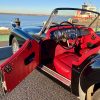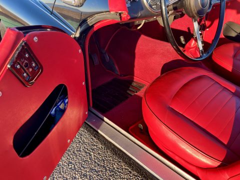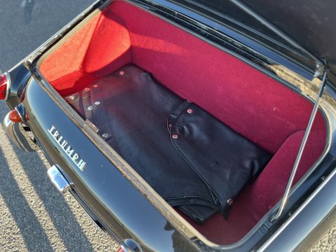 Noire intérieur rouge. Roues a rayons chromés, porte-bagages, couvre tonneau/capote, déflecteur d’air.