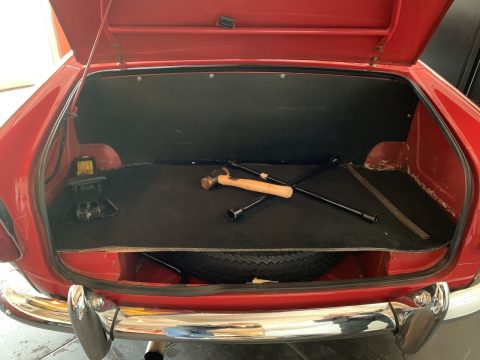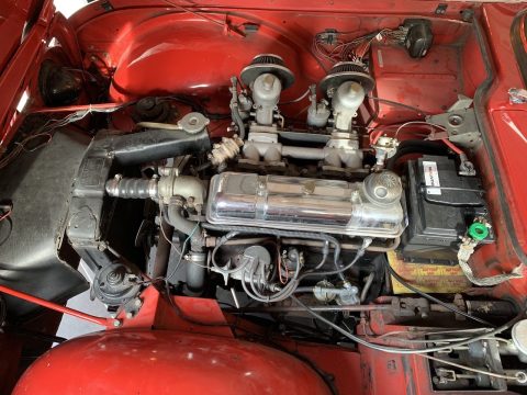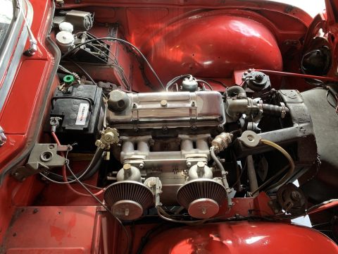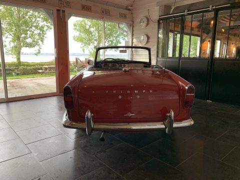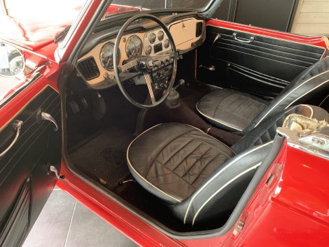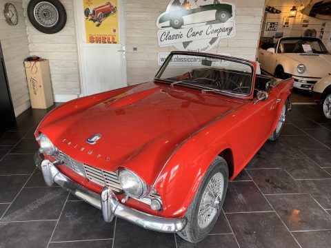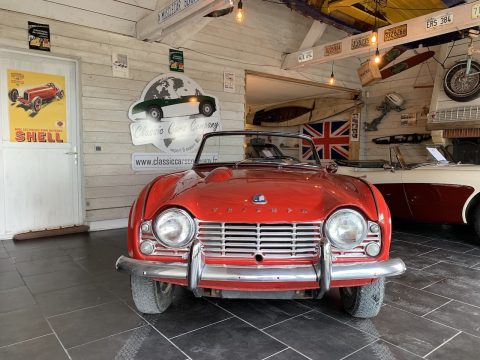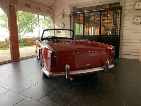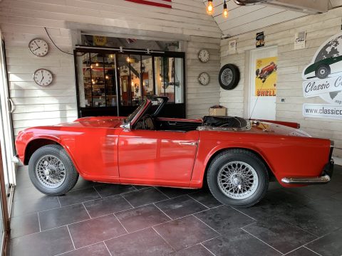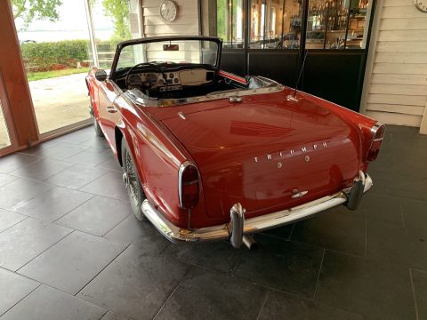 Triumph TR4 rouge cabriolet avec Overdrive